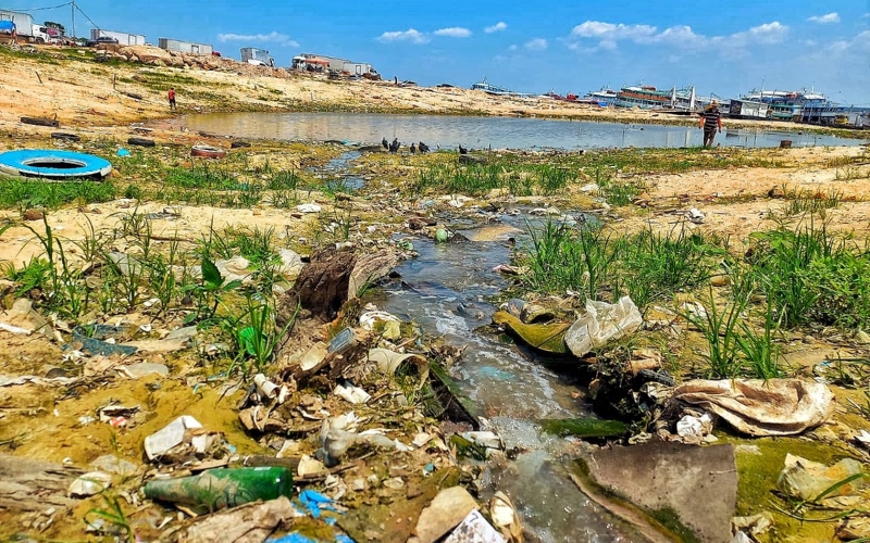 Porto da Manaus Moderna. Esgoto a céu aberto e lixo correm para o Rio Negro, revelando o déficit de saneamento que contamina a água, ameaçando a saúde e a vida. Foto: Adilson Moura