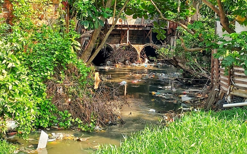 Poluição à beira de casa: galerias despejam água turva e o igarapé sofre com lixo, assoreamento e mau cheiro. Foto: Adilson Moura